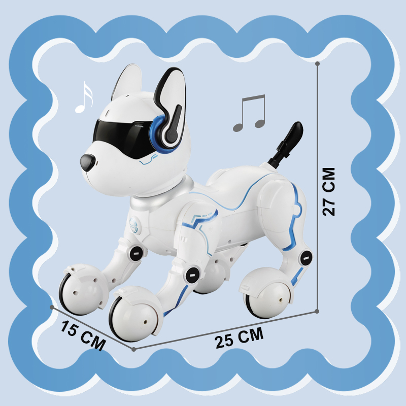 Remote Control】: You may operate the intelligent robot dog and let it do different actions by using the remote control. You may give voice commands to the robot dog. It will respond you like a real dog with the vocal commands.the robot puppy will act like a child and walk around to perform the programming actions. 【Various Actions & Imitation】: The Intelligent robot dog can imitate different animals' forms, just press the "IMITATE" button, this little puppy will imitate the calls and movements of the other animals, It will make your kids laugh for sure. 【Smart Robot Dog】: Intelligent robot dog is an intelligent and highly emulational puppy toy. The puppy's feet are in spherical, it makes you feel the robot dog more realistic. 【Advanced Programming Educational Toy Dog】: Intelligent robot dog is programmable, you can program the actions as you like to train this robot puppy. Just press the button "Programming", you can self program the actions. Pressing the button again, the dog will repeat what you programmed. The programmable robot dog can develop children's brain and improve their intelligence.