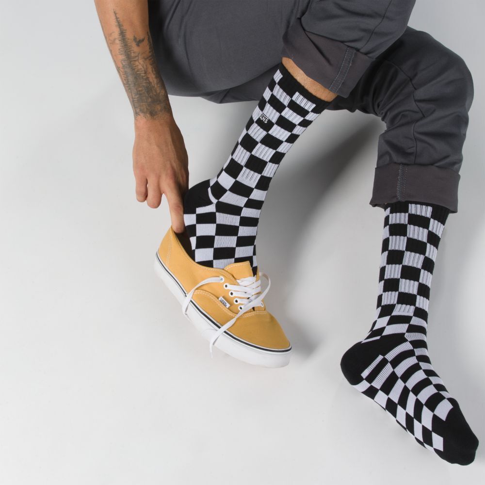 Vans Checkerboard Crew Socks (Size 6.5-9, 1 Pair) Men Socks Black VN0A3H3NHU01