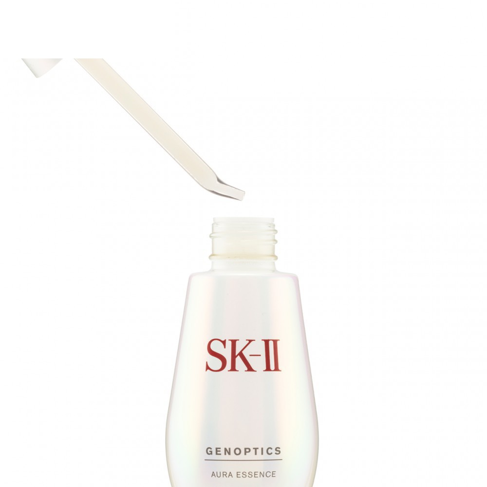 【SK-II Genoptics Aura Essence】Genoptics Aura Essence contains Pitera™ and GenOptics Aura Complex, with the use of the latest breakthrough in Whitening technology, it reduces your skin's hidden and visible spot formations to reveal a spot-less aura glow.Product Features:• Reduces visible spot formations• Helps diminish the hidden spots• Leaves skin looking radiant• This lightweight, milky essence spreads easily and can be quickly absorbed by skinIngredient:• Pitera™: Accelerating metabolism of skinHow To UsePump the dropper once into the palm of your hand to get the optimal dosage for one-time use. Smooth evenly over face. Apply extra Essence on concerned areas.
