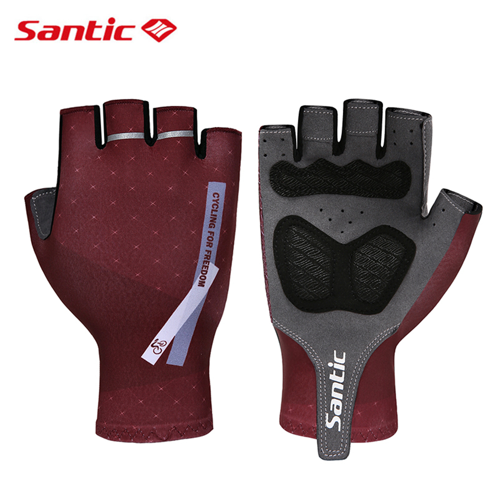 Santic Men Cycling Gloves Breathable Non-slip Shockproof Bike Bicycle Short Finger Gloves