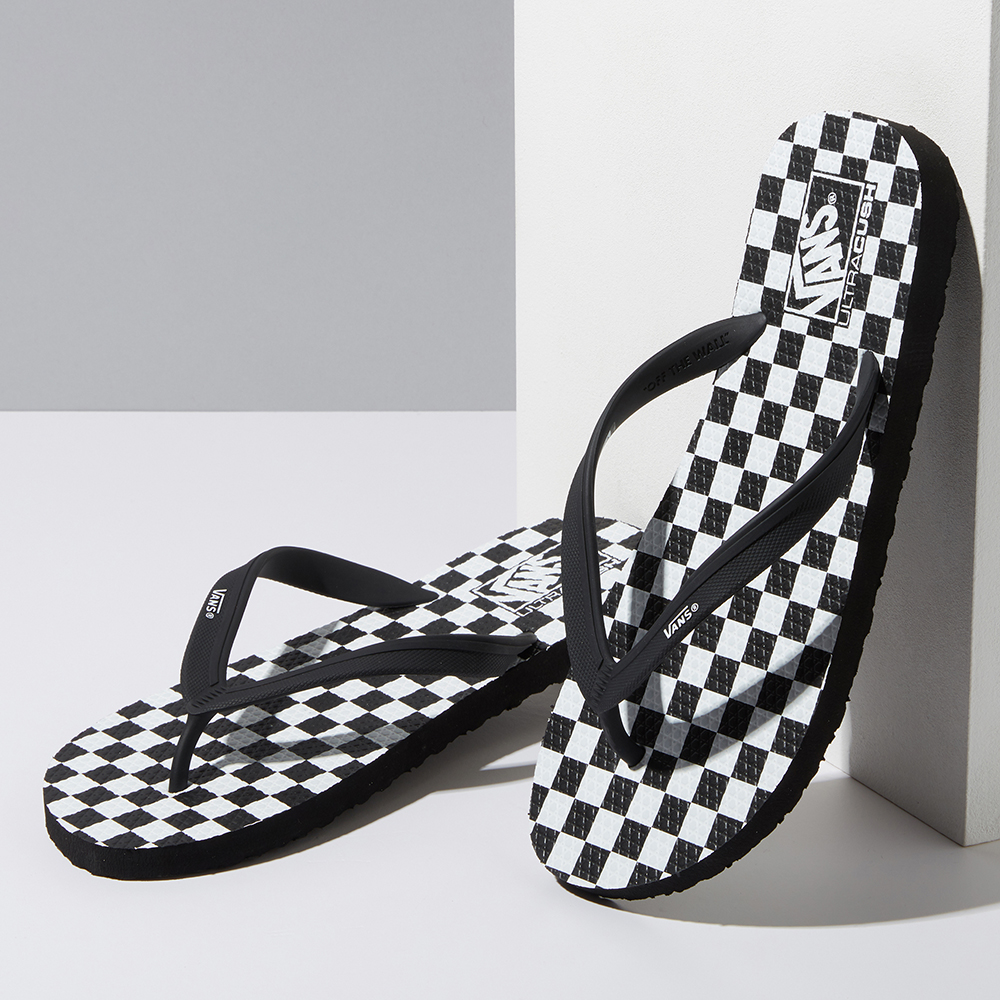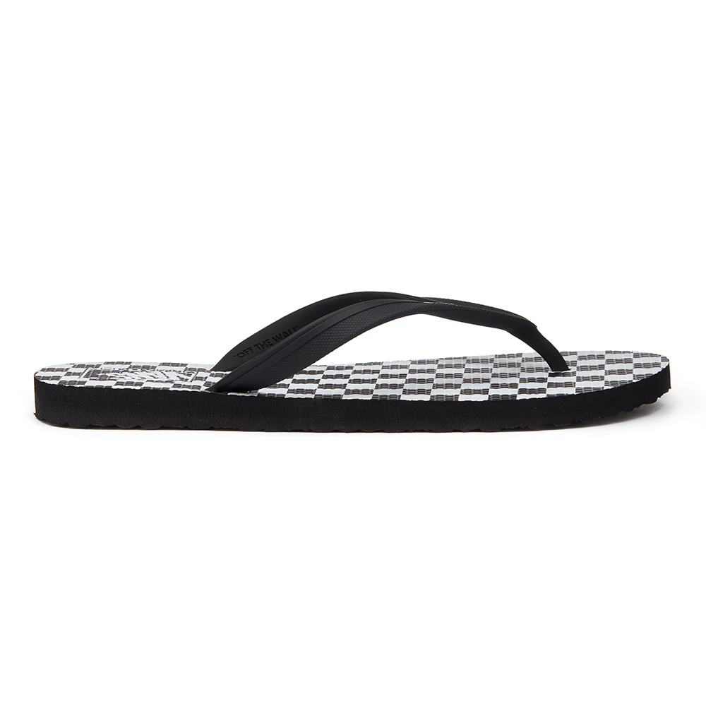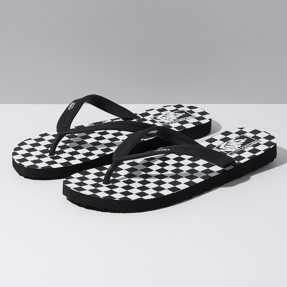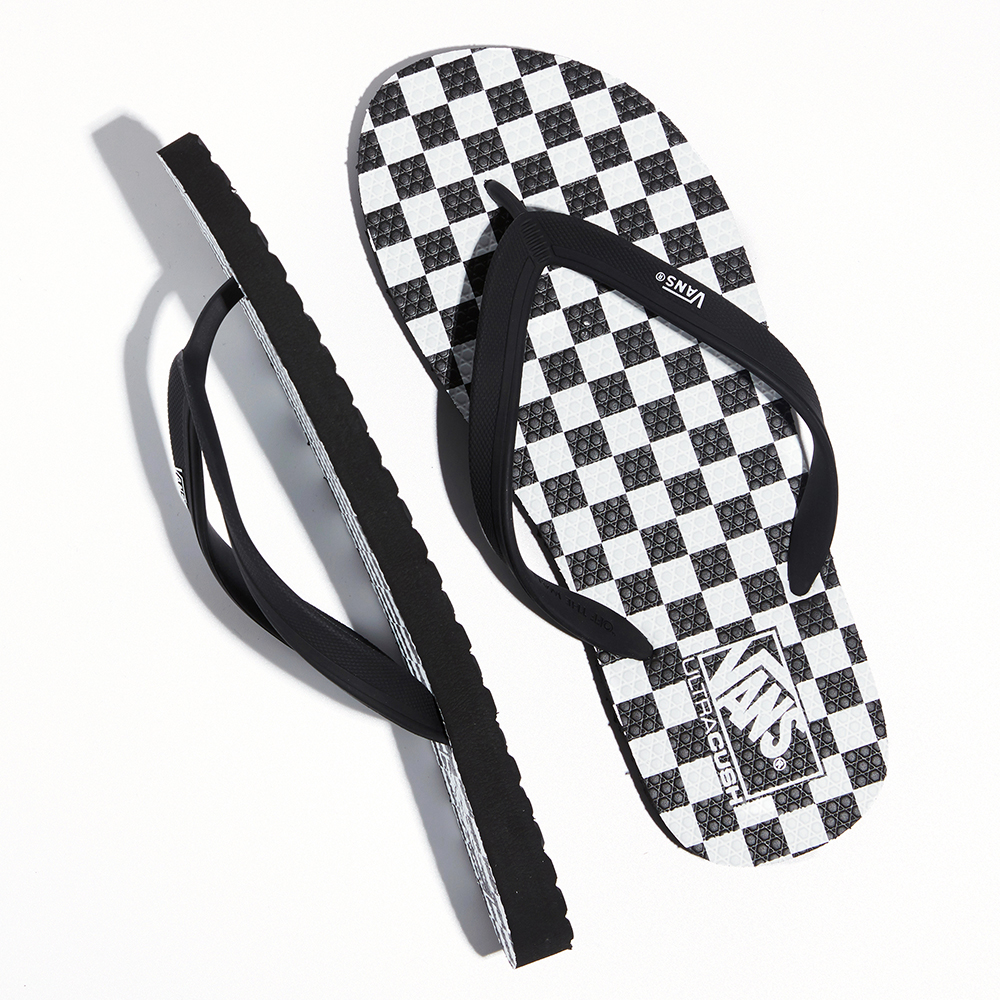 The Checkerboard Makena sandal features soft, PVC-free TPE straps, a one-piece rubber footbed with the Vans waffle emboss and checkerboard graphic details, and a durable sponge rubber waffle pattern outsole. It is made with water-based inks and glue.