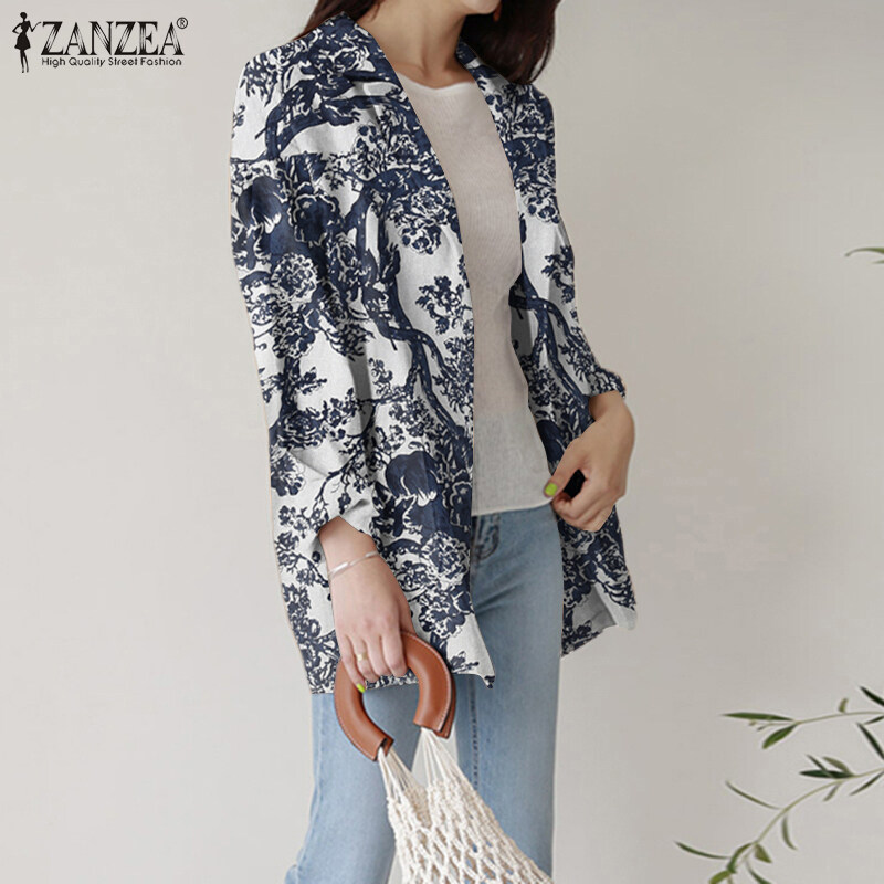 ZANZEA Women Spring Business Long Sleeve Buttons Down Suit Print Loose Coats Blazer