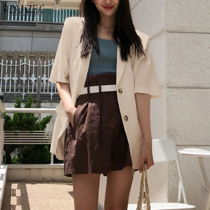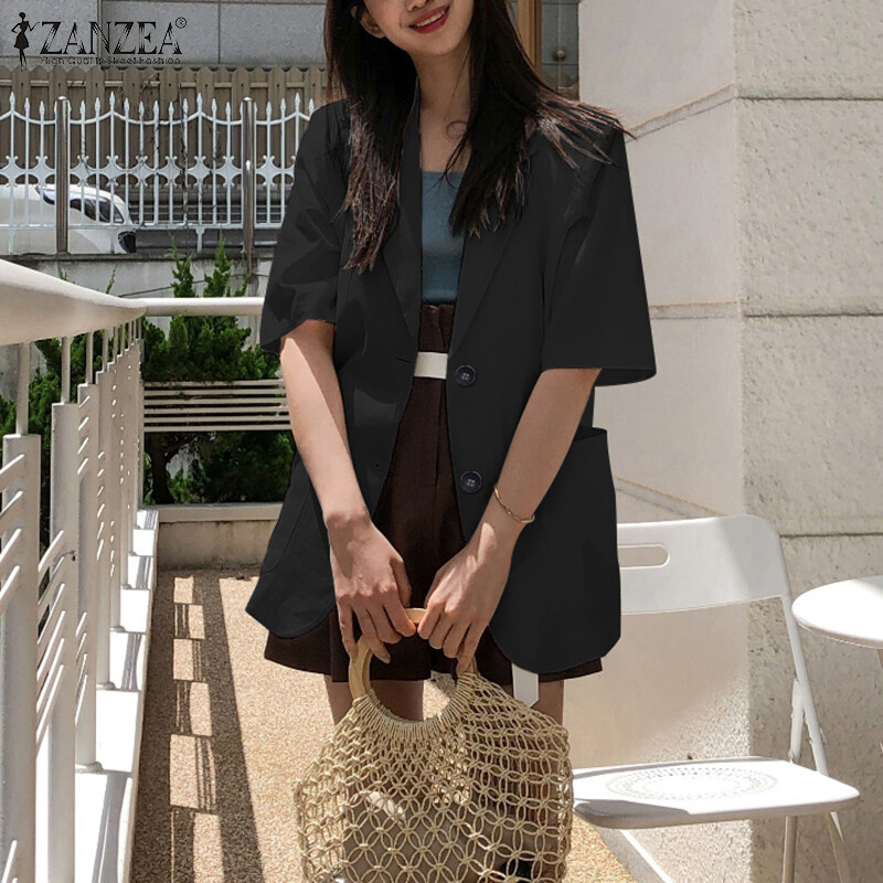 ZANZEA Korean Style Women Summer Solid Blazer Coat Outwear Half Sleeve Buttons Down Suits