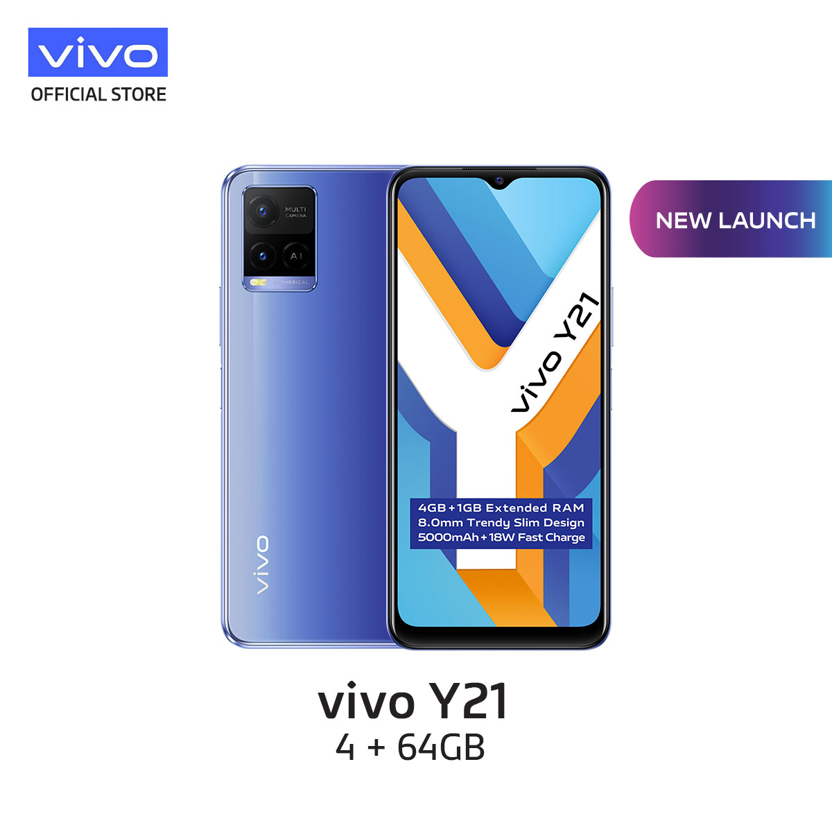 vivo Y21 [4GB+1gb/64GB] / 5000mAh + 18W Fast Charge/ AI Rear Camera System/ 8.0mm Trendy Slim Design【2 YEARS WARRANTY】