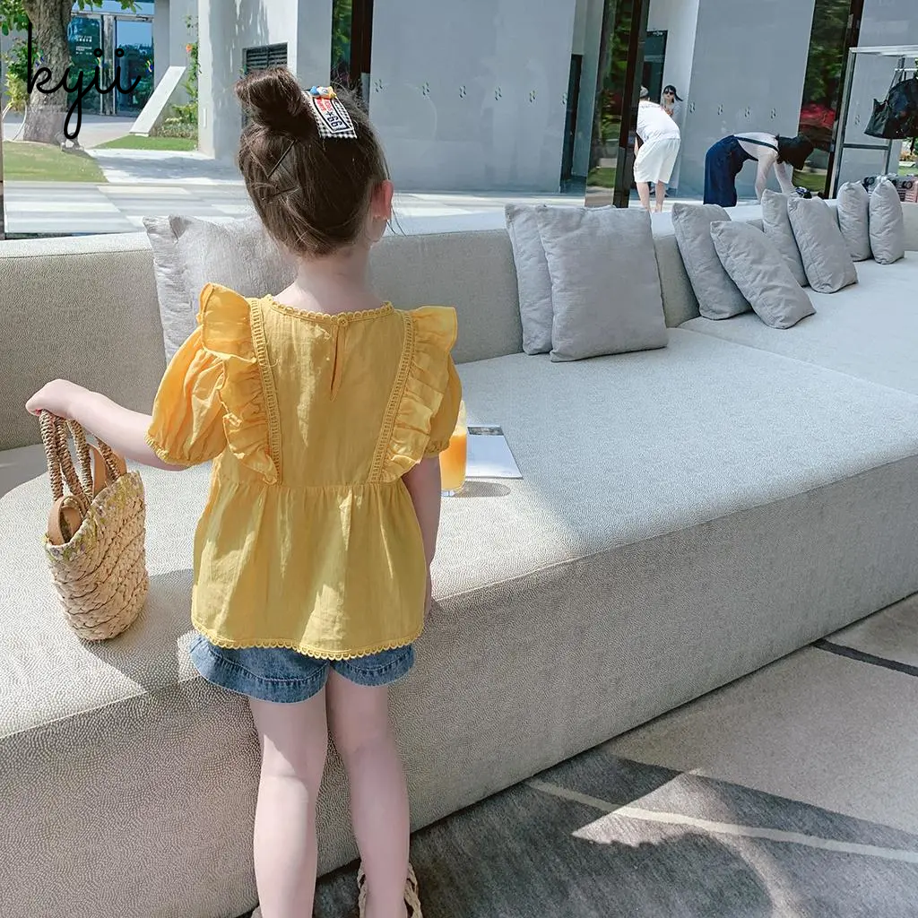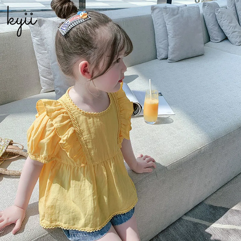 KYII Girls New Children Cotton Short Sleeve Shirt Summer Dress Western Style Baby Shirt Bubble Sleeve Top ky074
