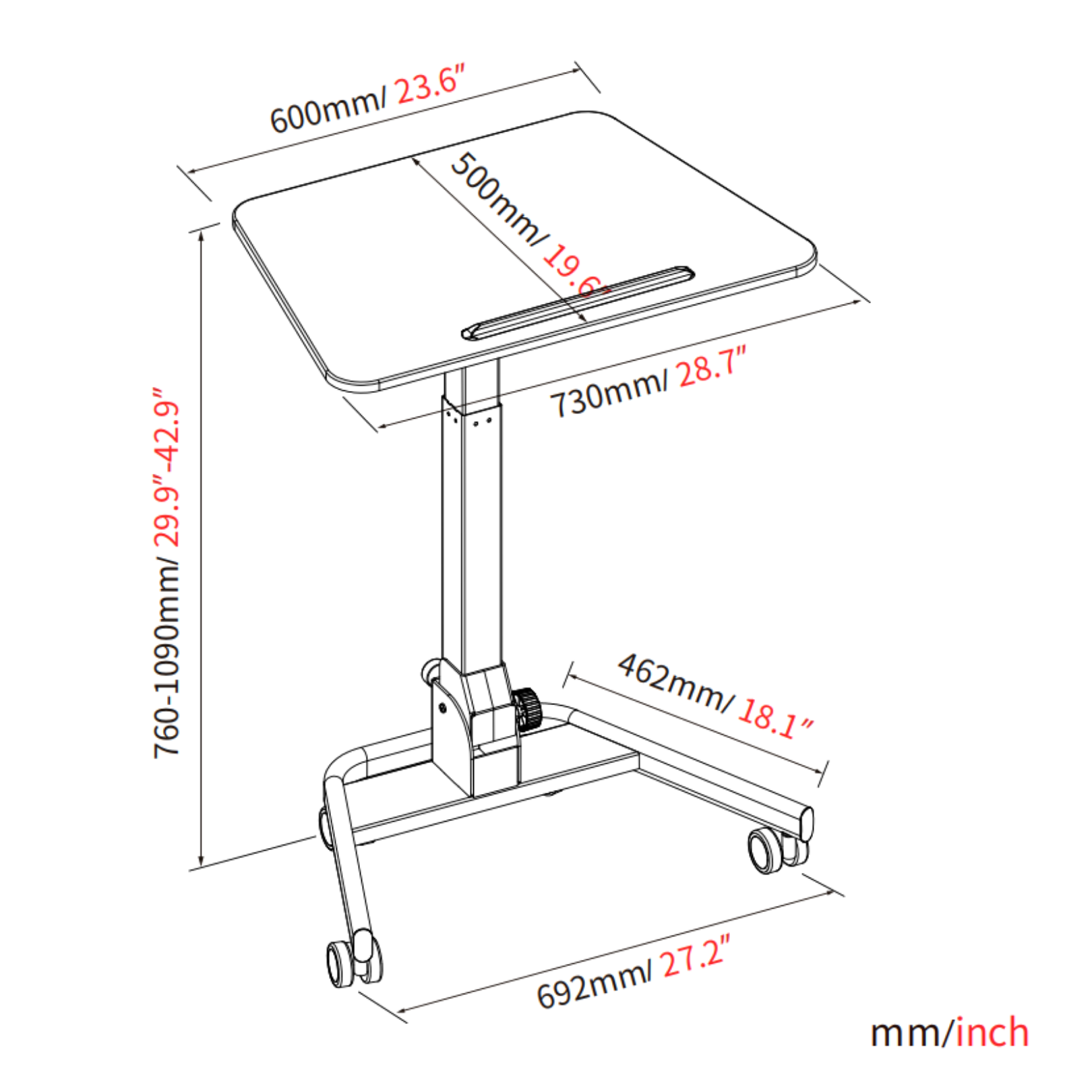 Height Adjustment Range: 760-1090mm (Range is Suitable for Sit or Stand)