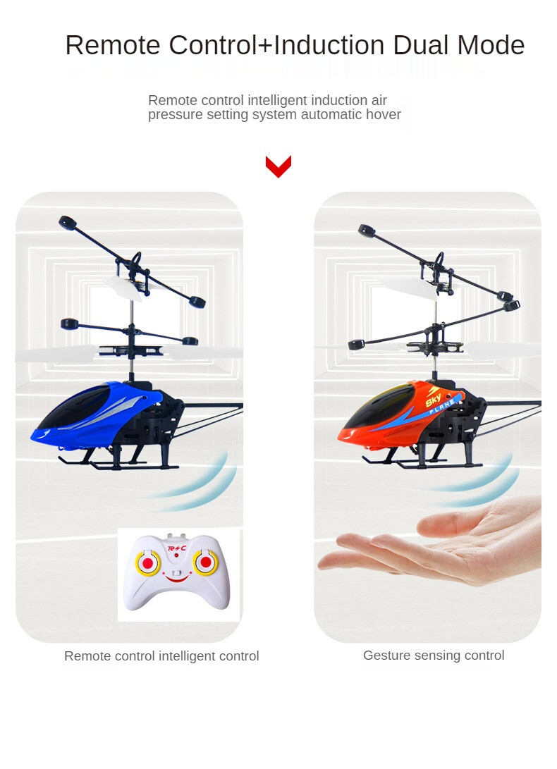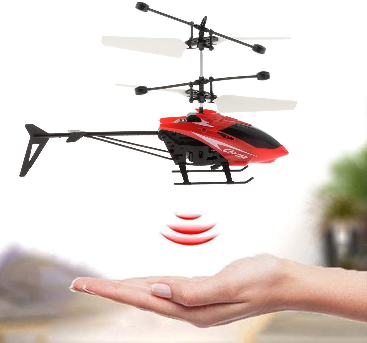 Induction Helicopter - Mini 2 Channel Remote Control Aircraft with Altitude Hold | LED Light Flying Plane Toys for Kids | Boys and Girls Birthday Christmas Gift | Indoor and Outdoor Play Games (Red,Bl