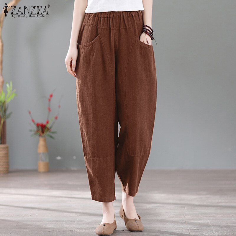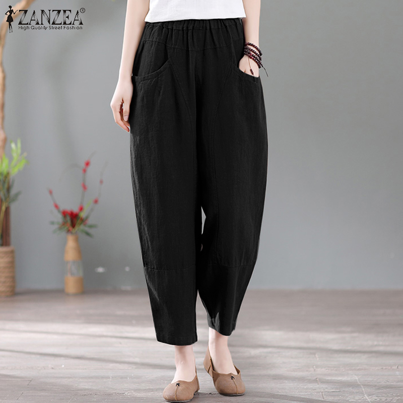 ZANZEA Women Summer Cotton Loose Harem Pants Retro Casual Slacks Long Trousers