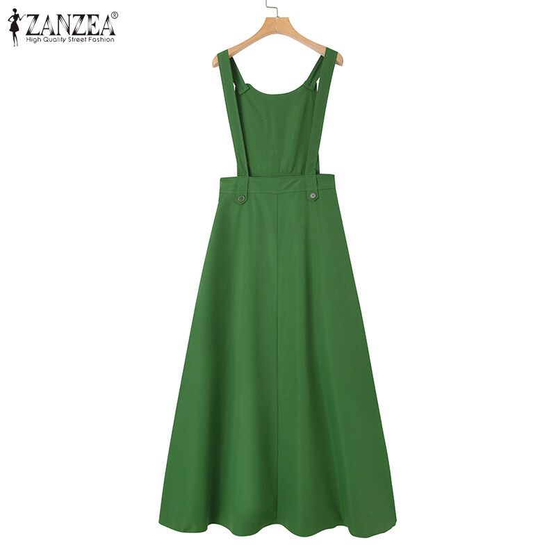 ZANZEA Muslimah Women Muslim Sleeveless Buttons A-Line Plain Maxi One-piece Cami Dresses