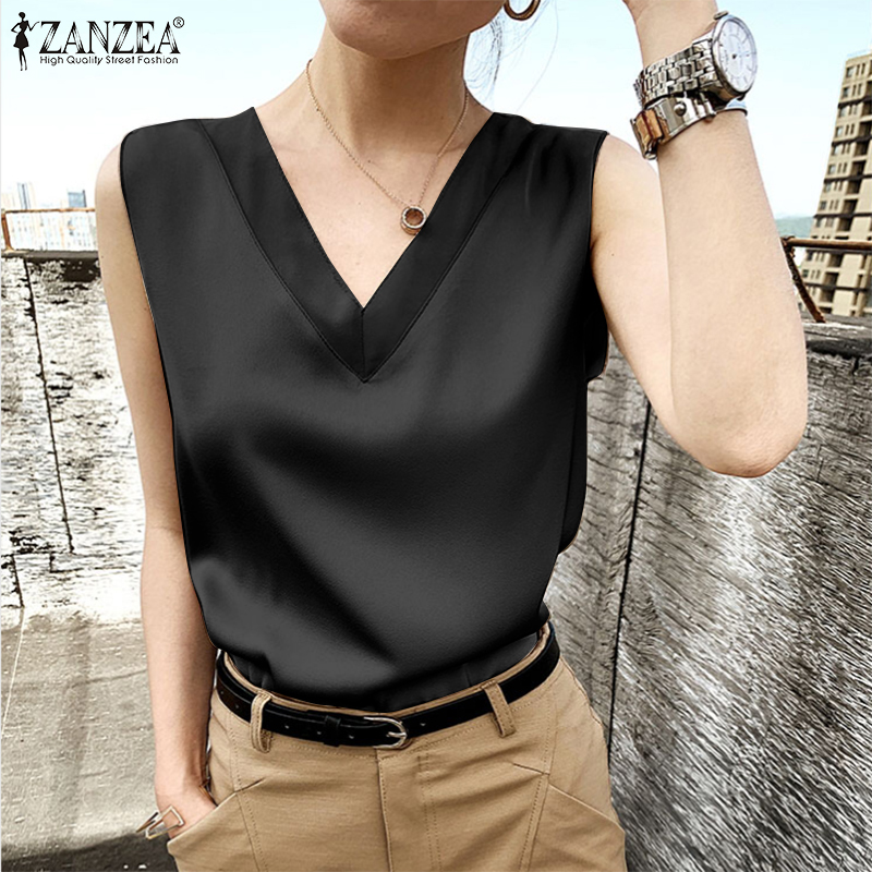 ZANZEA Womens Sleeveless Satin Silky Tops Cocktail Party Gown Blouse Cami Vest Shirt #11