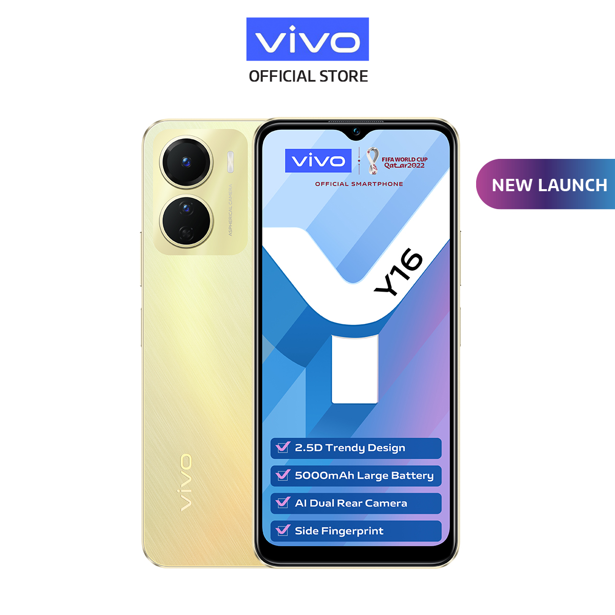 vivo Y16 [4GB+4GB Extended RAM/64GB] / 5000 mAH + 10W / AI Dual Camera / 2.5D Trendy Design