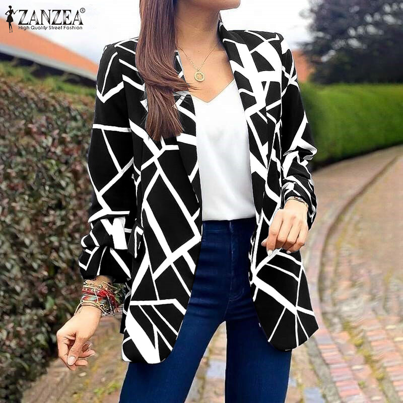 ZANZEA Women Long Sleeve Blazer Coat Lapel Collar Print Patchwork Elegant Casual Jackets #15