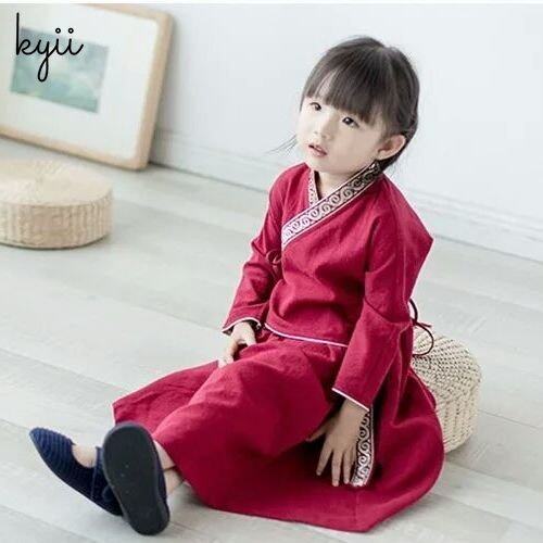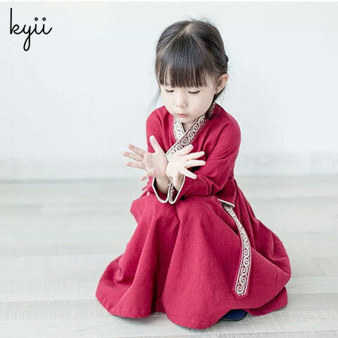 KYII Kids Girls V-Neck Dress Casual Loose Long Sleeve Dress kyii0086