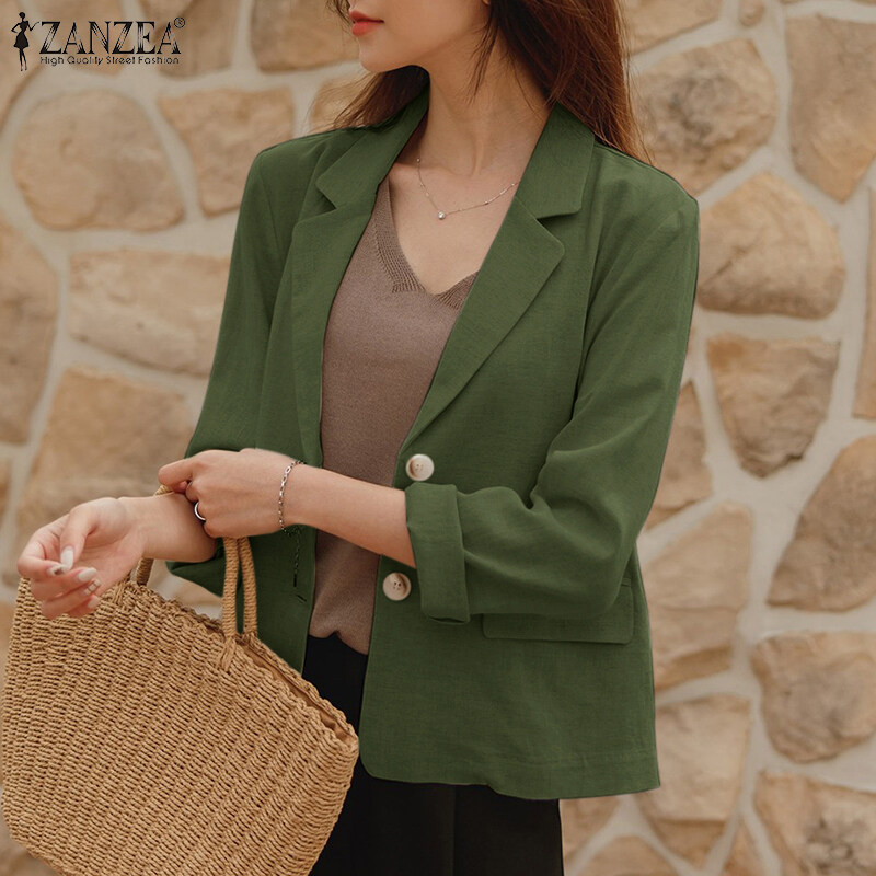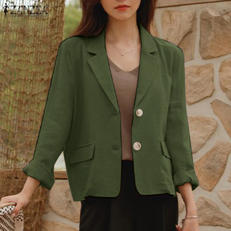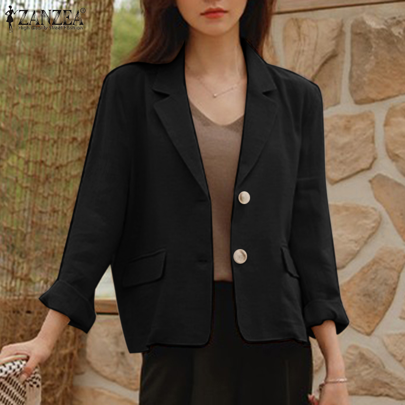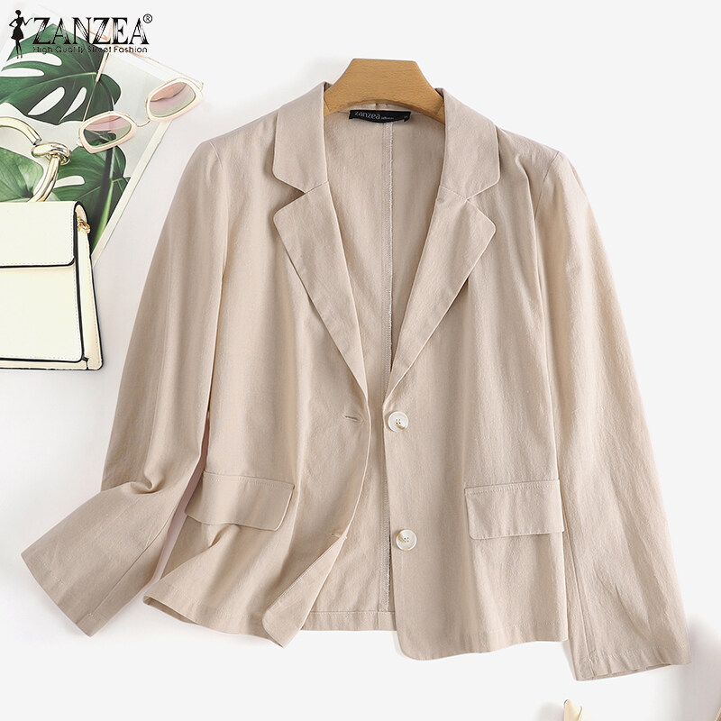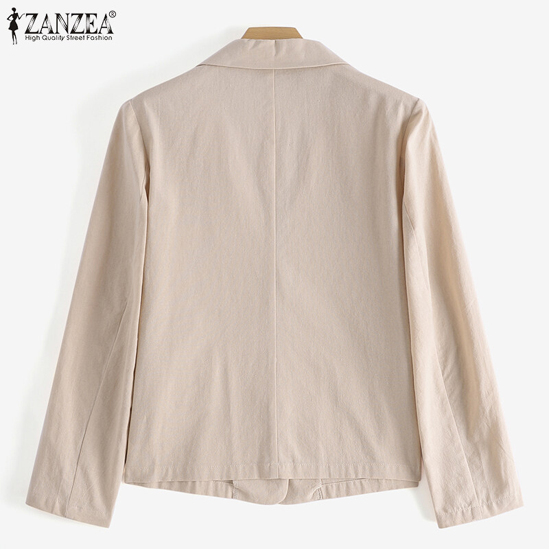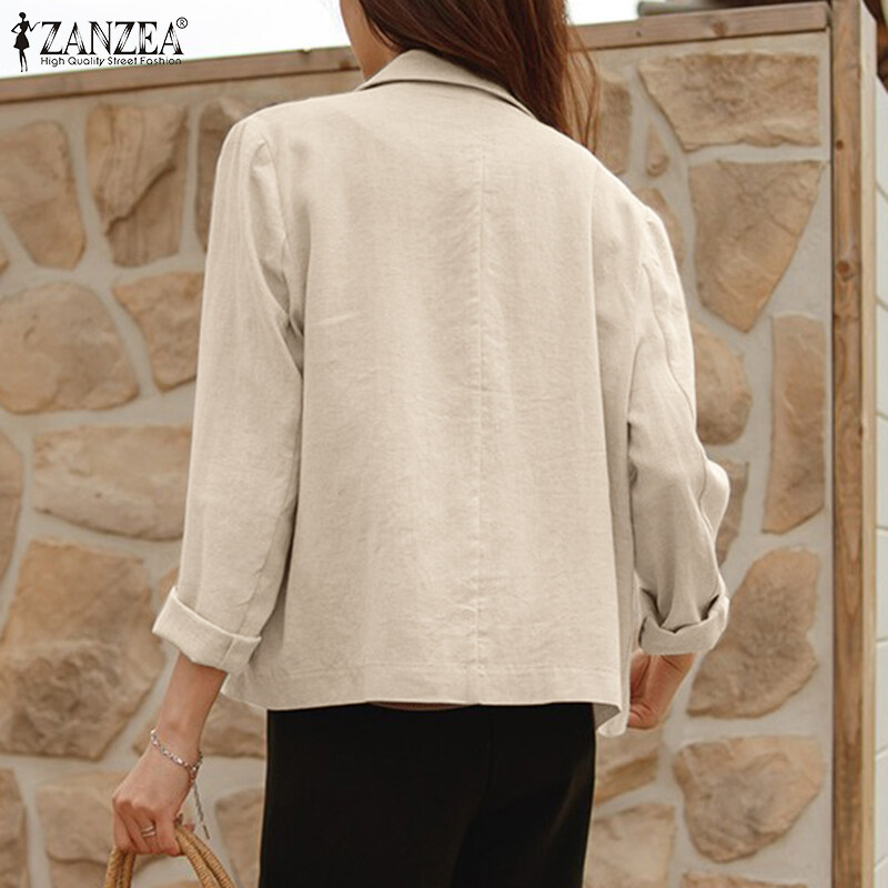 ZANZEA Korean Style Women Cotton Linen Casual Loose Blazer Suit Fashion Vintage Outwear Tops #10