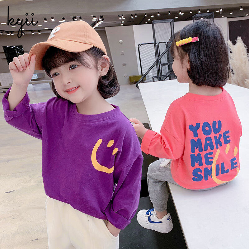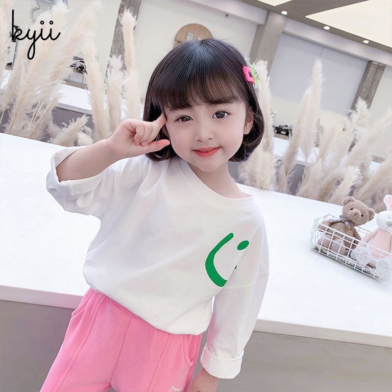 KYII Girls Long Sleeve summer children Cotton Korean Round-neck Top kyii0173