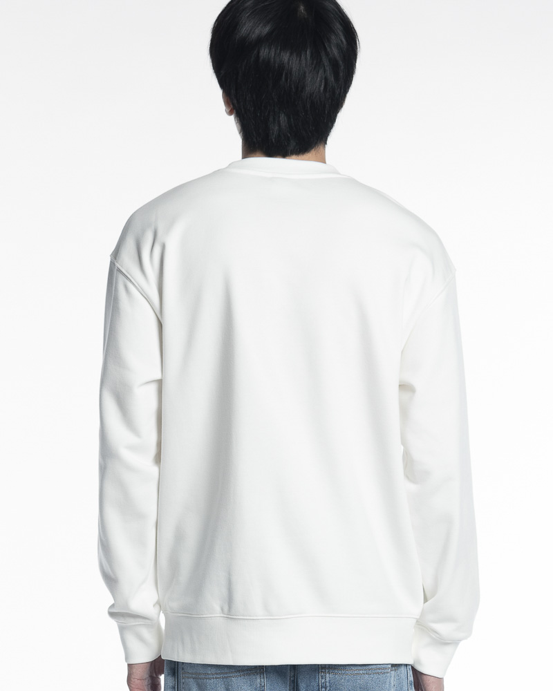 Yishion Men Solid Colour Long Sleeve Sweatshirt with Promote Slogan Embroidery (White)