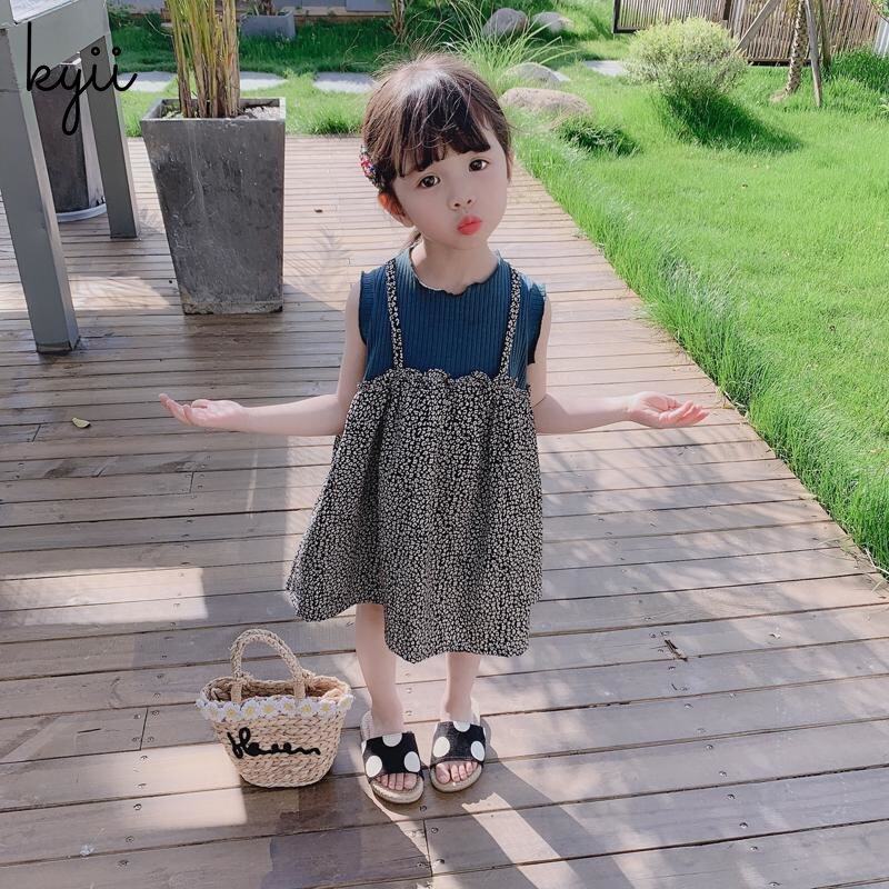 KYII Kids Girls Summer Round-neck Dress Sleeveless Casual Loose Dress kyii0210