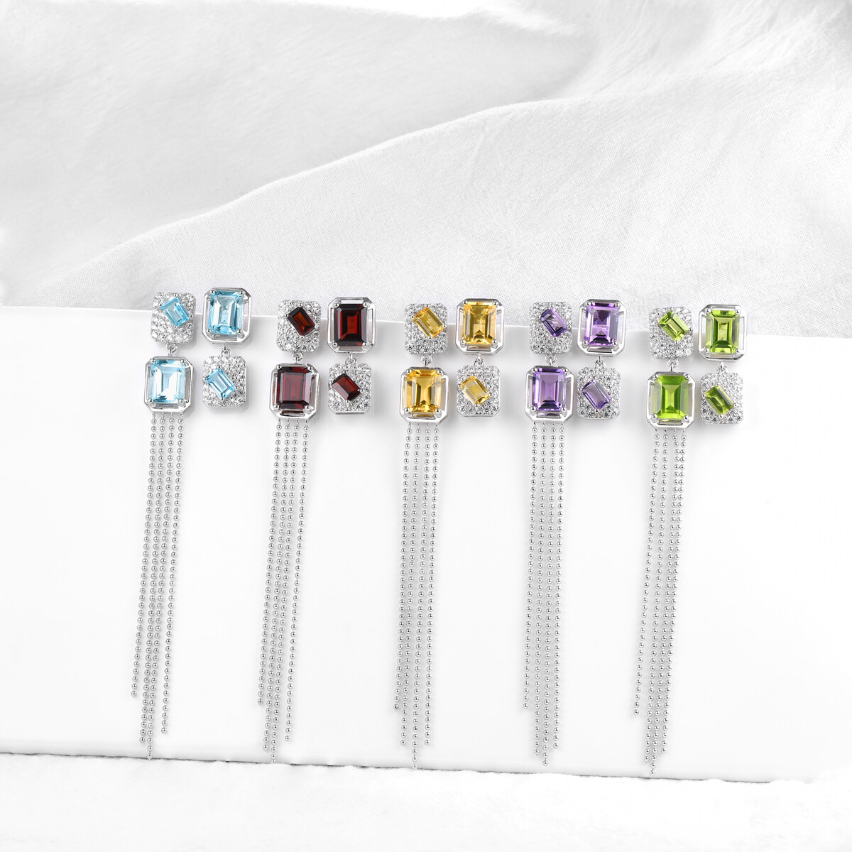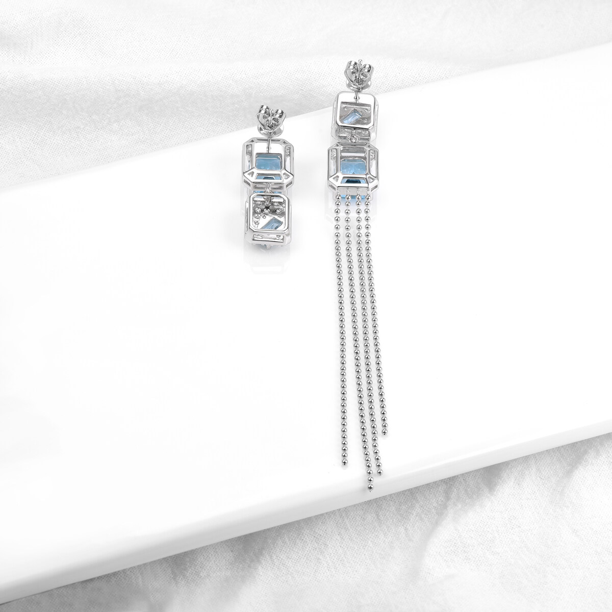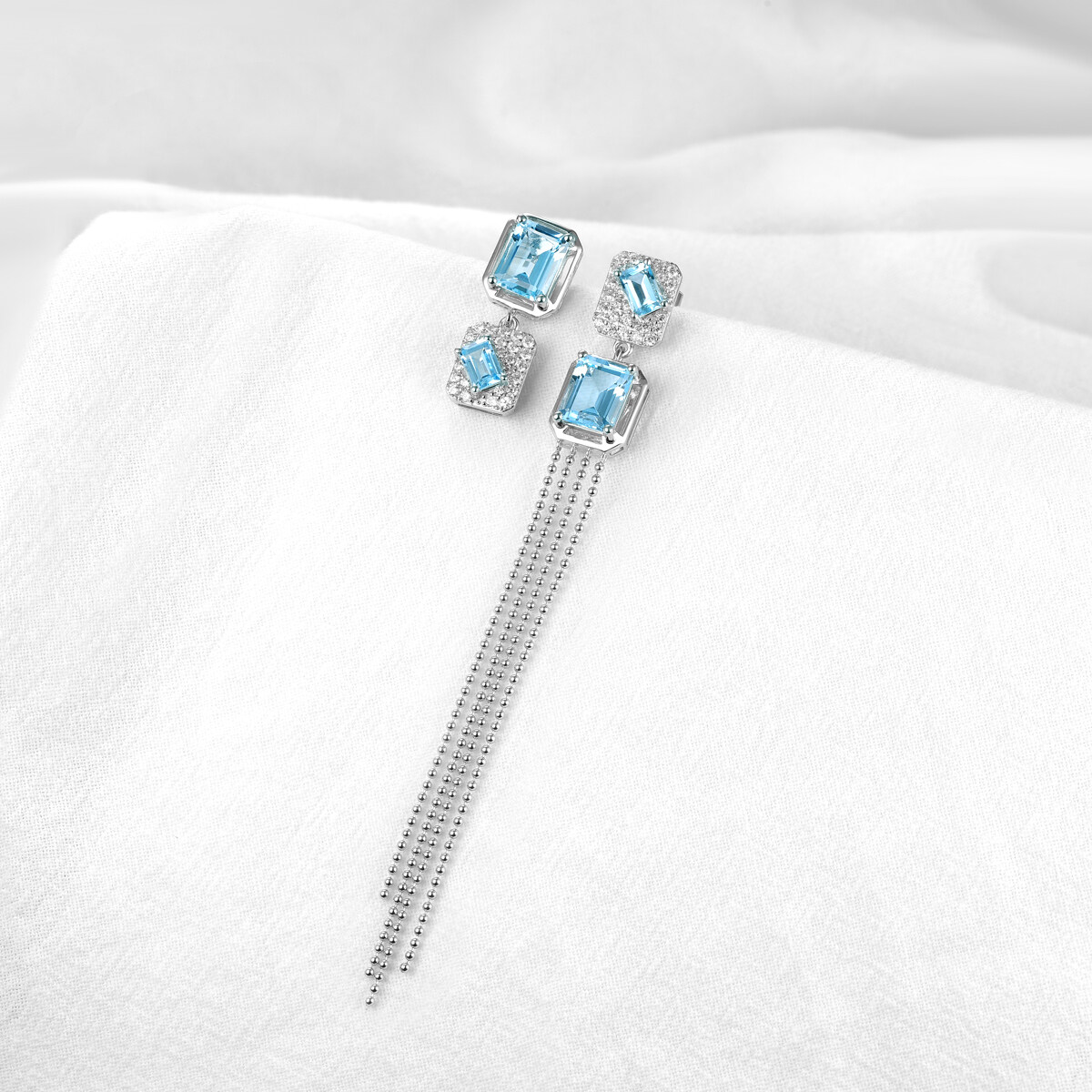 7.5 Carats Genuine Natural Sky Blue Topaz Light Blue Gemstone Sterling Silver 925 Drop Earrings Topaz Earrings For Women Jewelry