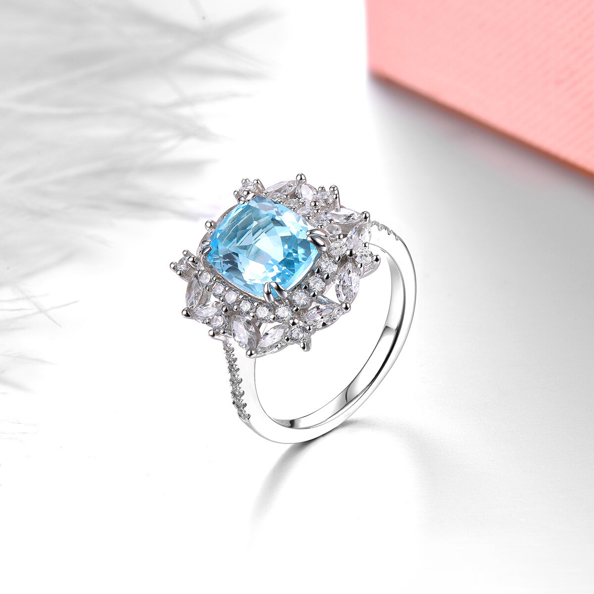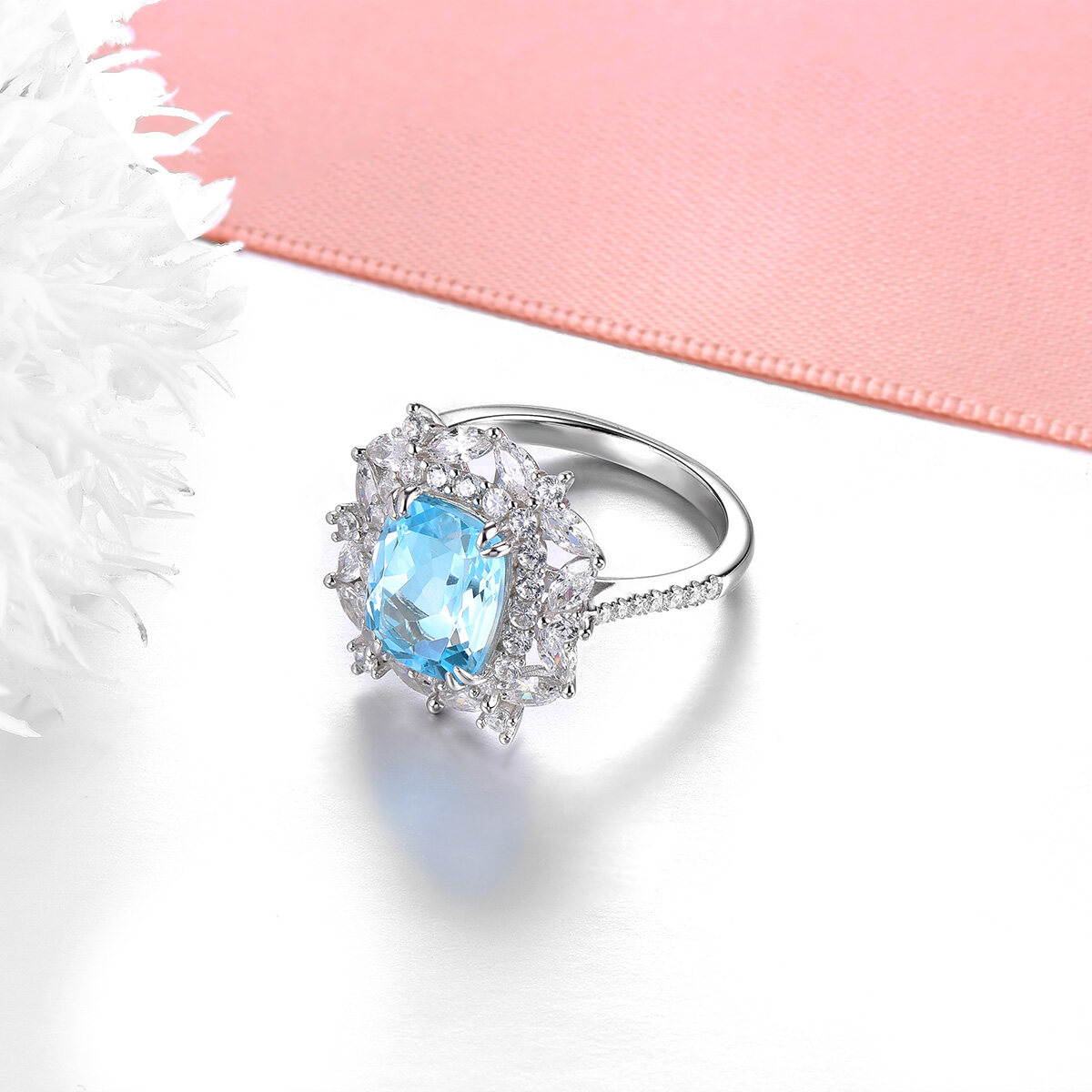 4.3 Carats Ring Silver 925 Original Natural Sky Blue Topaz Light Blue Gemstone Topaz Ring For Lady Jewelry Anniversary Gift