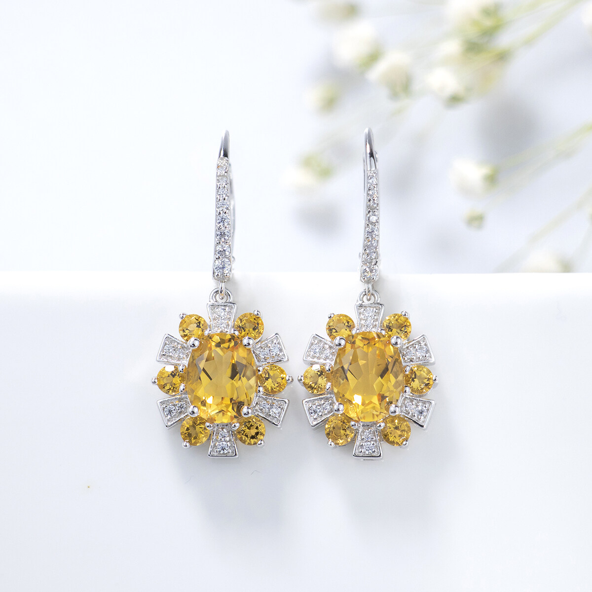 Sterling Silver S925 Original Drop Earrings Natural Topaz Genuine Gemstone Women Top Quality Coloful Jewelrys Wedding