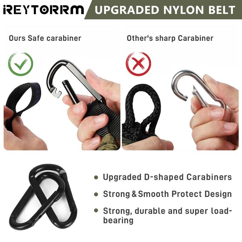 All THE INSTALLATION TOOLS INCLUDED: Our portable Hammock comes with 2 easy-setup hammock straps(12 adjustment loops + 13.12ft long combined)+2 heavy duty carabiners +2 net ropes. NO need to buy any other tree straps or carabiners. Save your TIME and MONEY. Perfect gifts for him/her.