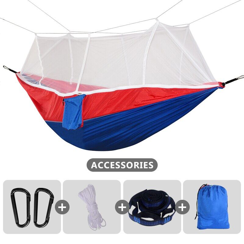 Camping Hammock with Mosquito Net - 2 Person Portable Nylon Hammock Tent for Indoor Backpacking Hiking Travel, with 2 Pcs 6.56 Ft Tree Straps 5+1 loops and 2 Pcs Carabiners Gear